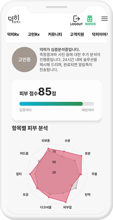 - 덕히Rx는 딥러닝 AI와 000건 빅데이터 기반으로 정확하게 당신의 피부를 분석한 후,